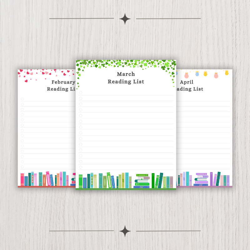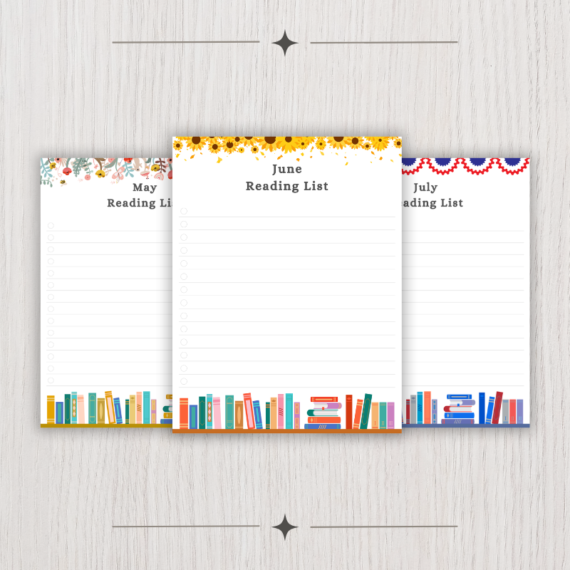 - Record book titles to read for each month.